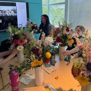 Invite your employees to join floral design workshops that are aimed at engaging your team creatively while promoting relaxation and mindfulness. These workshops provide a unique, hands-on experience where employees can engage creatively while learning the art of flower arranging. Whether your team is together in the office or spread out across different locations, workshops can be done either virtually or in-person. This offers a relaxing and enjoyable way to foster connection, promote mindfulness, and boost morale regardless of the physical location of each team member.