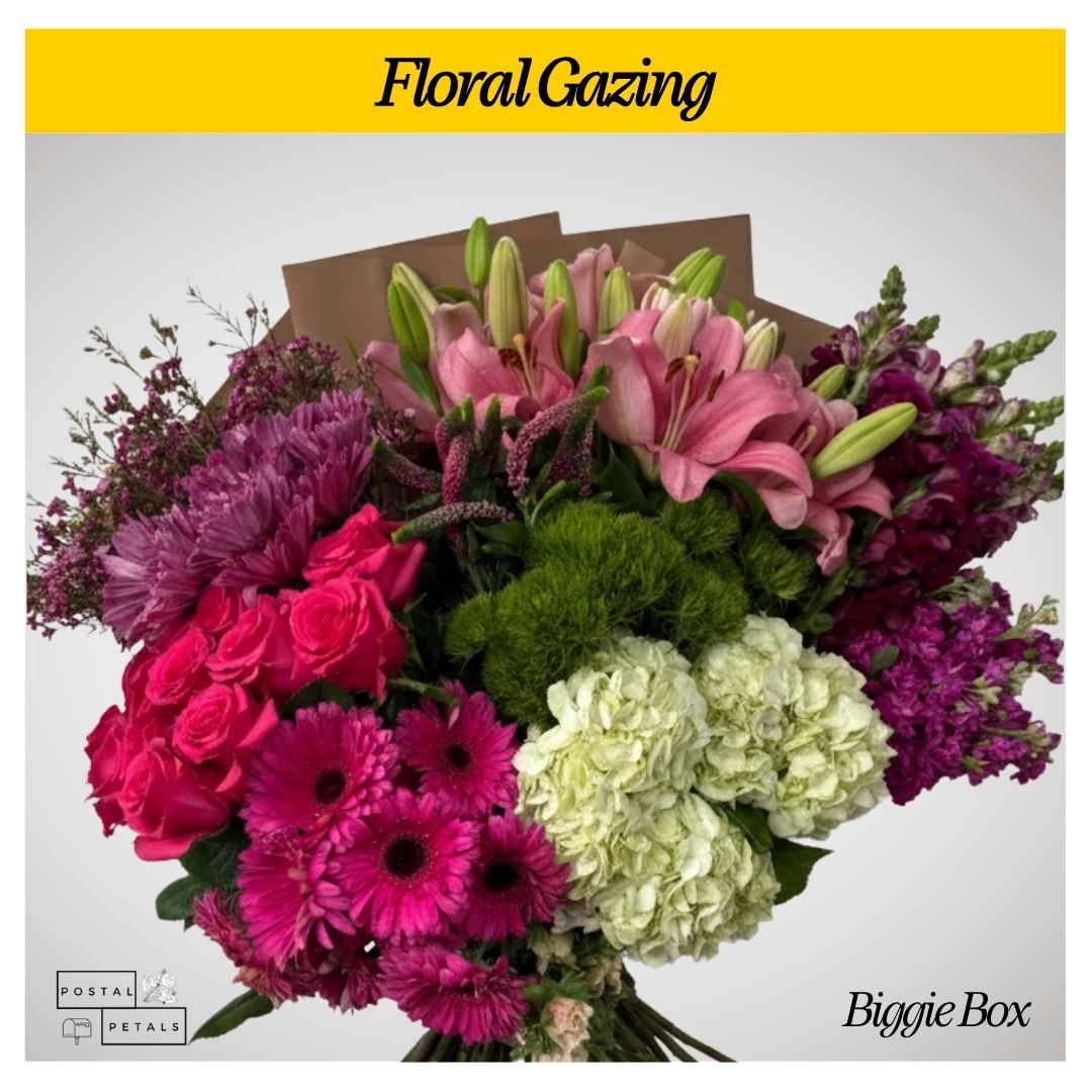 Send the ultimate gift for floral enthusiasts with our Biggie Box! Packed with 12 to 15 bundles, this bloom box allows your recipient to create four to five medium arrangements, offering endless creative possibilities.