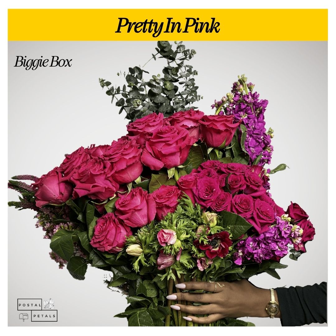 Pretty In Pink - Midi Box comes with everything listed in the Beanie Box, plus one bunch each of Anemones, Stock, and Waxflower